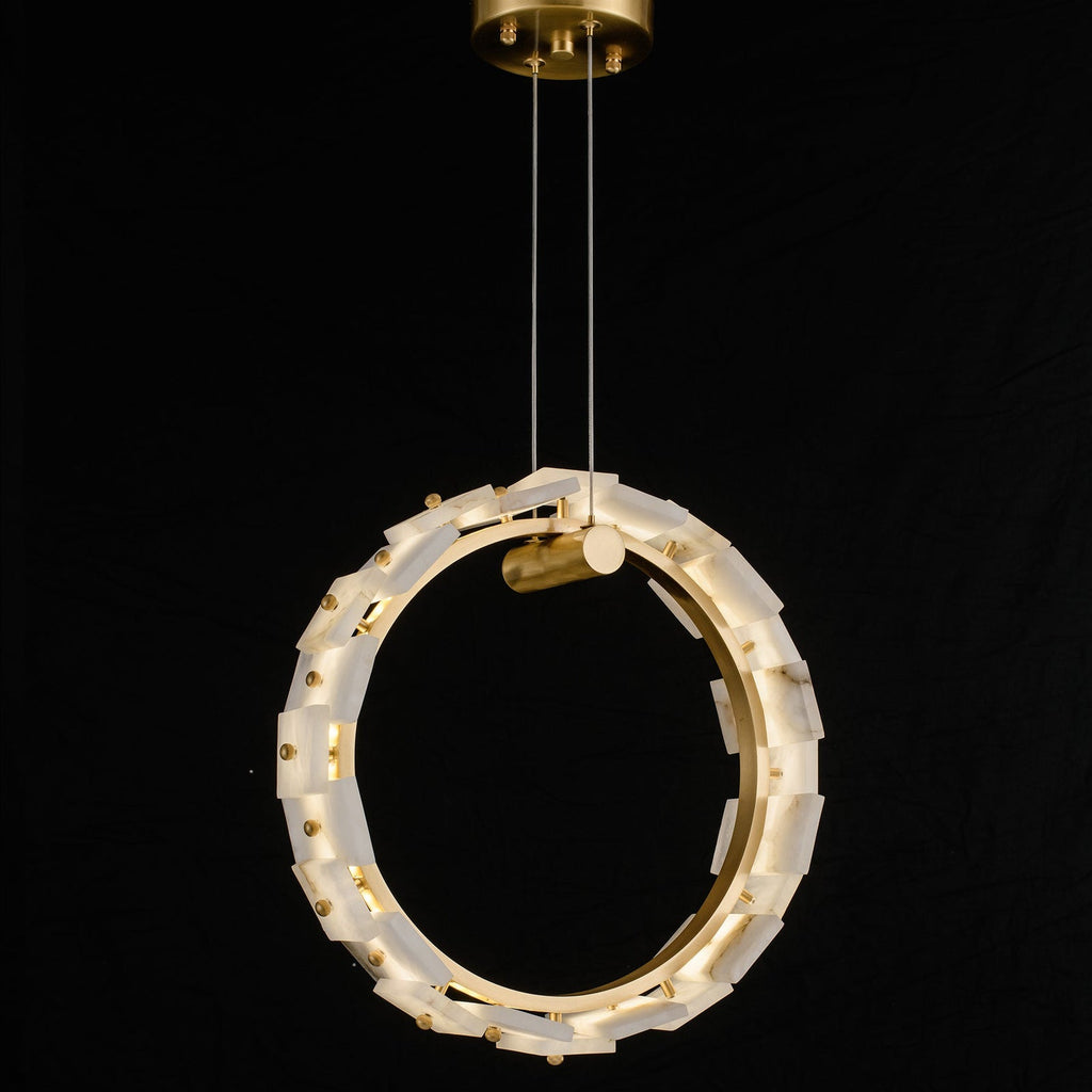 Illuminate your interior with timeless sophistication. The Vertical Ring Alabaster Pendant Lamp features a handcrafted alabaster shade that diffuses light evenly, creating a soft, ambient glow. Its solid copper frame adds both durability and refinement, making it a statement piece that elevates any space with quiet luxury.